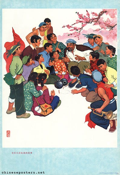 Det gamle militsmedlem fortæller historier fra Modstandskrigen, 1973 (Kilde: Chineseposters)