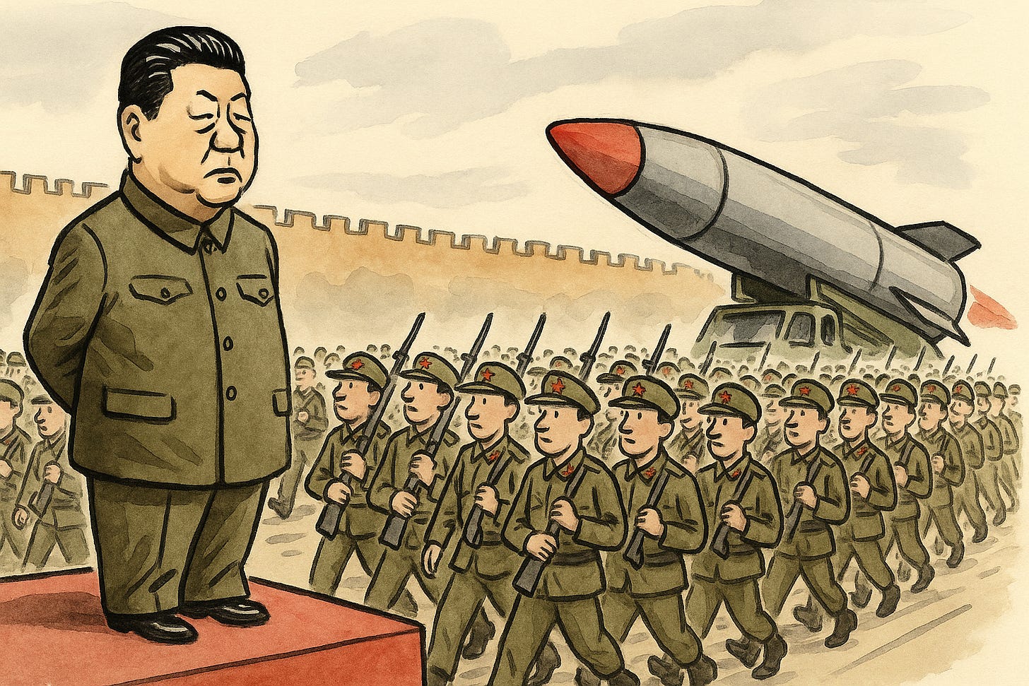 Kontekst: 3. September markeredes 80-året for afslutningen på 2. Verdenskrig i Beijing under den kinesiske titel: Paraden på 80-årsdagen for sejren i det kinesiske folks modstand mod japansk aggression og den antifascistiske verdenskrig 纪念中国人民抗日战争暨世界反法西斯战争胜利80周年大会 (jìniàn Zhōngguó rénmín kàng Rì zhànzhēng jì shìjiè fǎnfǎxīsī zhànzhēng shènglì bāshí zhōunián dàhuì).