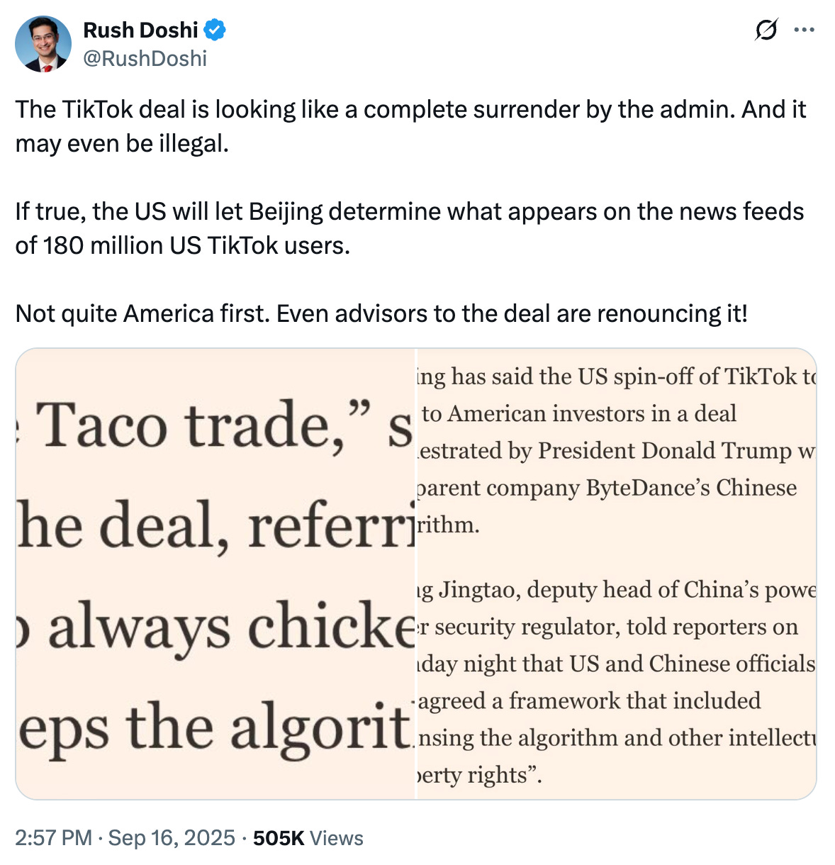 Efter mødet i Madrid gik rygterne i gang om, at Kina og USA var blevet enige om en aftale omkring TikTok. En aftale som mange amerikanere langt fra var begejstrede for, blandt andet Rush Doshi, adjunkt i sikkerhedsstudier ved Georgetown University og director, CFR China Strategy Initiative.