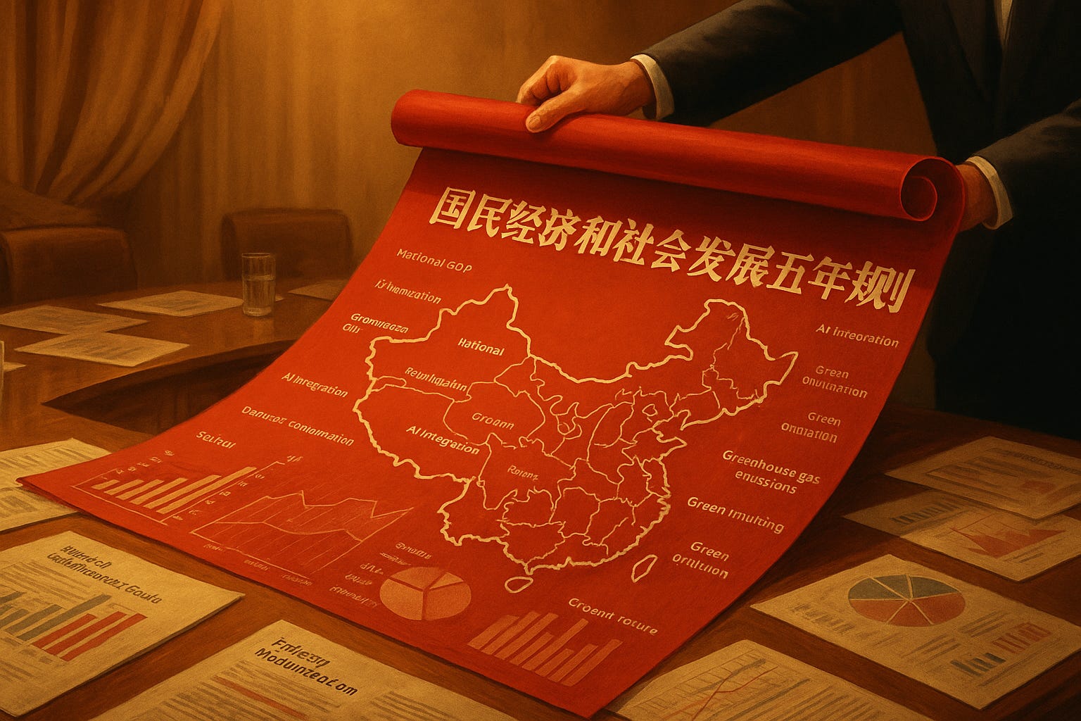Altså et moderniseret industrisystem med fremstillingssektoren som “rygraden” af Kinas fremtidige økonomi. Her skal man selvfølgelig især slippe ud af middelindkomstfælden 中等收入陷阱 (zhōngděng shōurù xiàntǐng). Der er fokus på nye kvalitets produktionskræfter (新质生产力), som er et begreb, vi har hørt rigtig meget til de seneste år, og som også høres gentaget af kinesiske delegationer, der kommer til Danmark. Det er et begreb, der peger på innovation, kunstig intelligens og grøn teknologi som nye vækstmotorer. Vi kommer til at høre det igen og igen de kommende år.