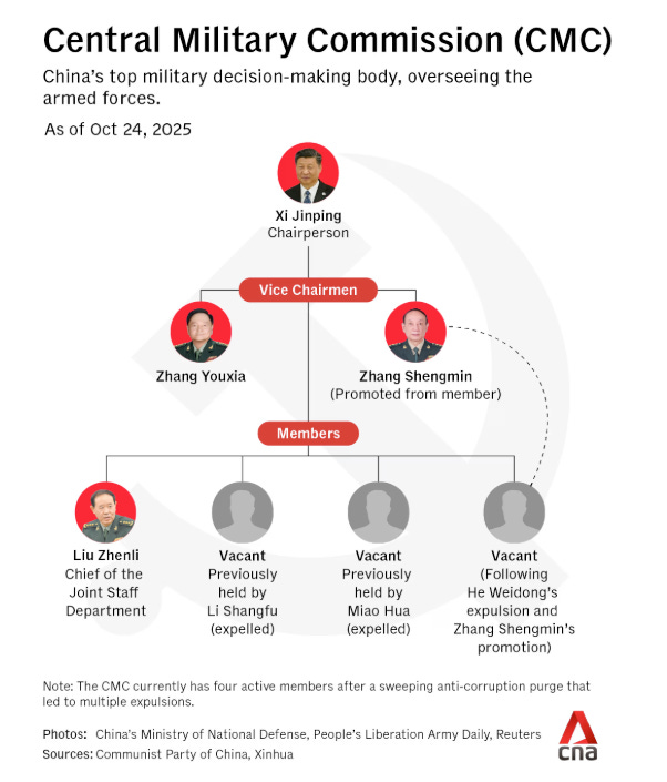Efter udrensningen af He Weidong, som vi beskrev i særudgaven af nyhedsbrevet om det fjerde plenarmøde, er Zhang Shengmin nu blevet forfremmet til viceformand for CMC, men han er ikke på lige fod med Zhang Youxia, som sidder i politbureauet. Zhang Shengmin kommer også fra CMC’s disciplinærkommission 中央军委纪律检查委员会 (Zhōngyāng Jūnwěi Jìlǜ Jiǎnchá Wěiyuánhuì). Sidstnævnte er også et ben af organisationen, som er blevet styrket og udbygget under Xis lederskab. Forfremmelsen af Zhang Shengmin er altså en indikation på, at Xi stadig ser et behov for styrke det politiske og ideologiske fokus for PLA.