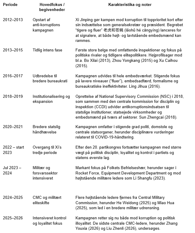 Tidslinje: Korruptionsbølger under Xi Jinping (2012–2026)