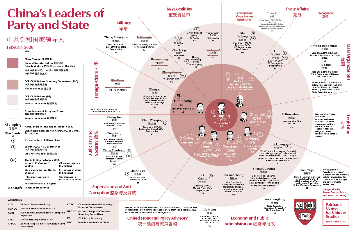 Mens vi er ved topledelsen i Kina, vil faste læsere huske, at vi for to år siden bragte en oversigt over Kinas lederskab i parti og stat - den er for nyligt blevet opdateret og kan ses her: